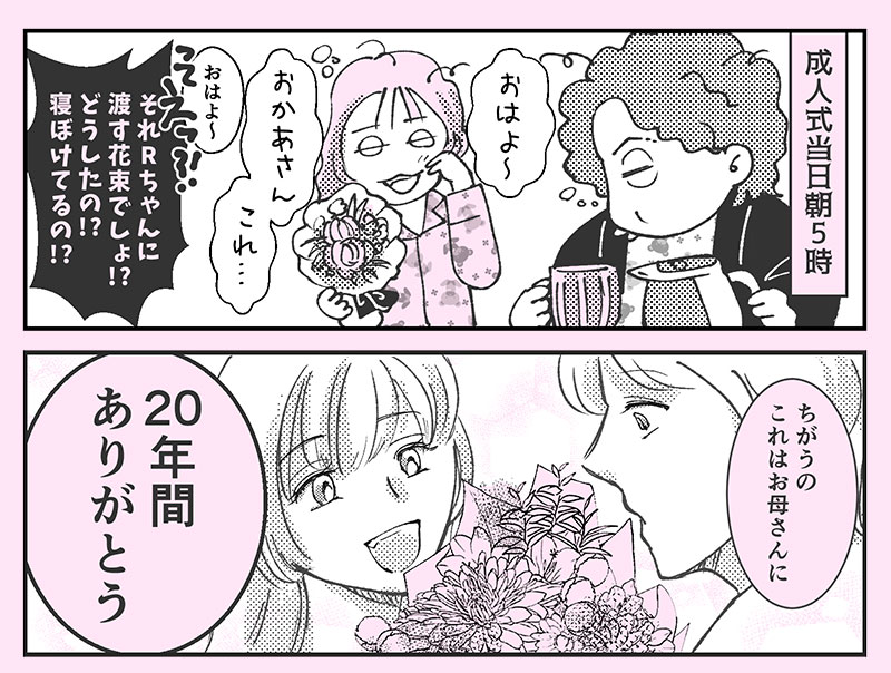 ちがう、、これは私からおかあさんに。「20年間ありがとう」